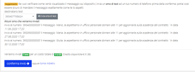 - Ecco il riepilogo degli SMS che verranno inviati: