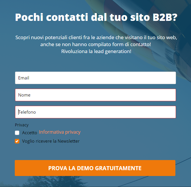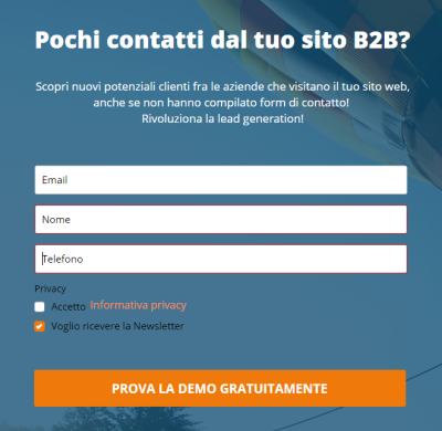 A meno che tu non sia per qualche motivo estremamente interessato ai contenuti che ti potrà inviare questa azienda, difficilmente lascerai i tuoi dati. Non c'è nulla che catturi l'attenzione e nulla che ci stimoli a lasciare il contatto.