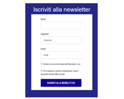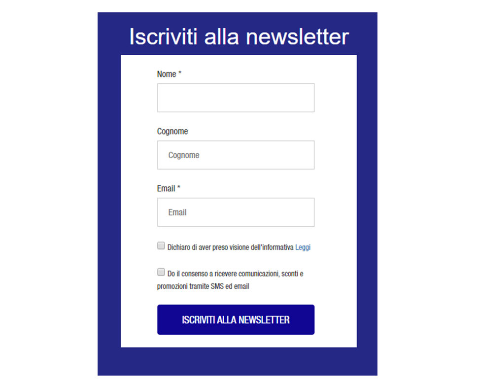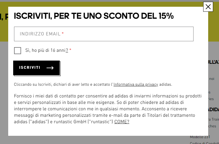 sconti per chi si iscrive alla newsletter o lascia il numero di cellulare, come fa Adidas sul suo sito web: