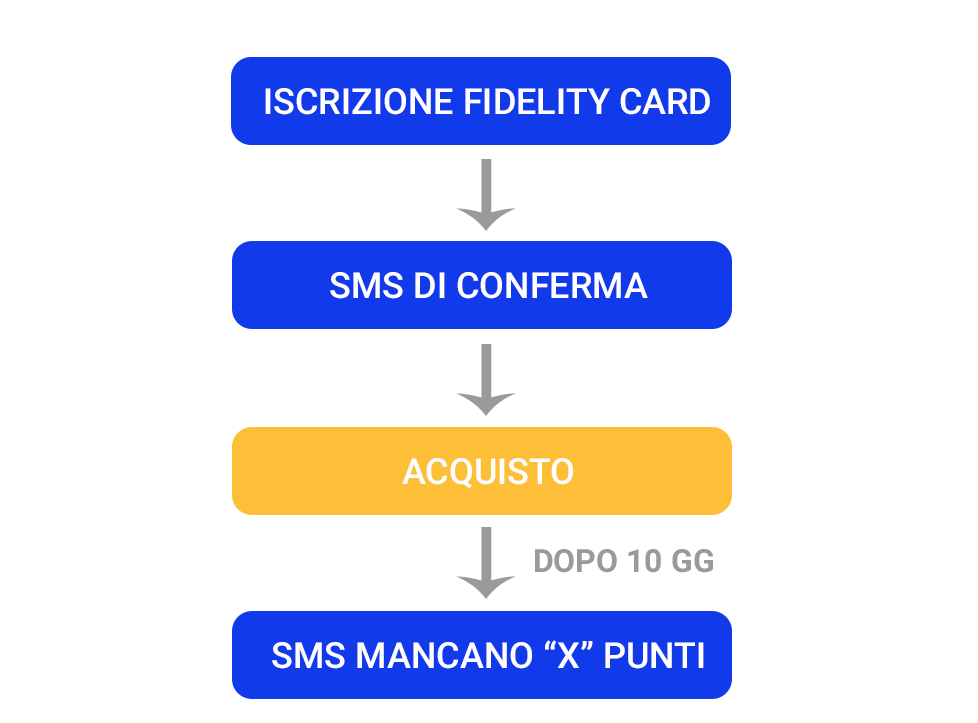 - In automatico dopo 10 giorni dall’acquisto, riceve un SMS con scritto: