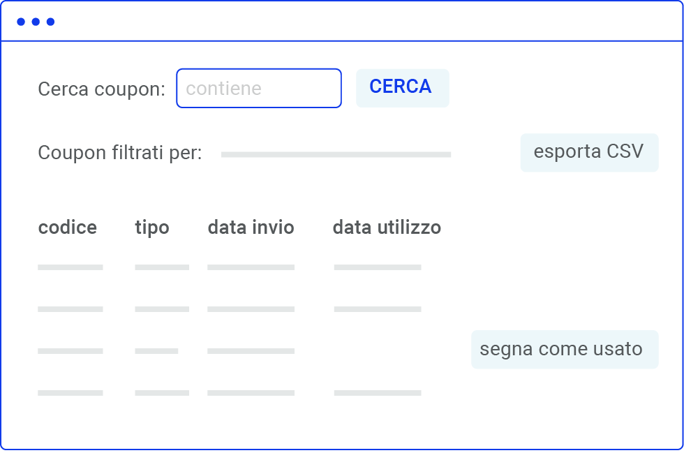 Chi compila il form e ti lascia i propri dati entro le 24h, riceve in automatico un coupon sconto via SMS. Quando arriva in negozio, semplicemente basta che ti dica il nome o il coupon e tu lo potrai segnare come utilizzato.