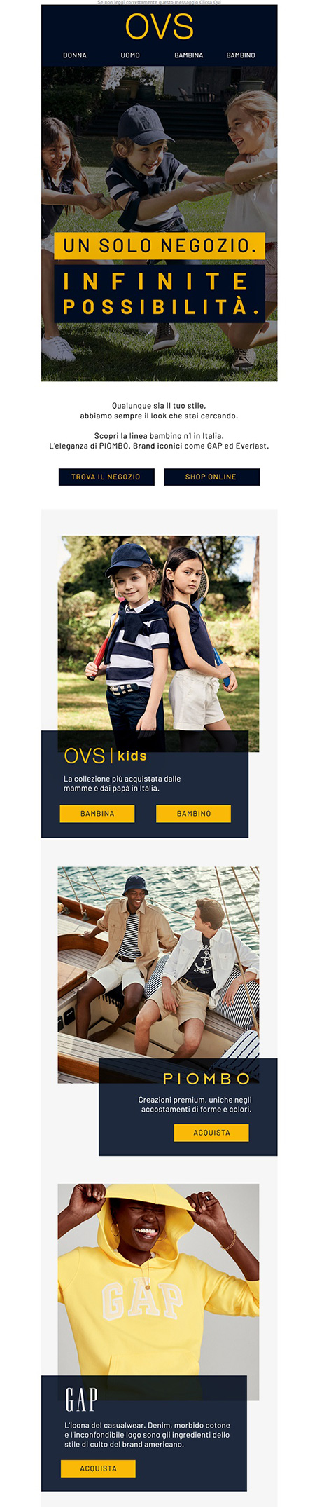 Oppure puoi usare la newsletter per mostrare alcuni brand che tieni in negozio, come ha fatto OVS: