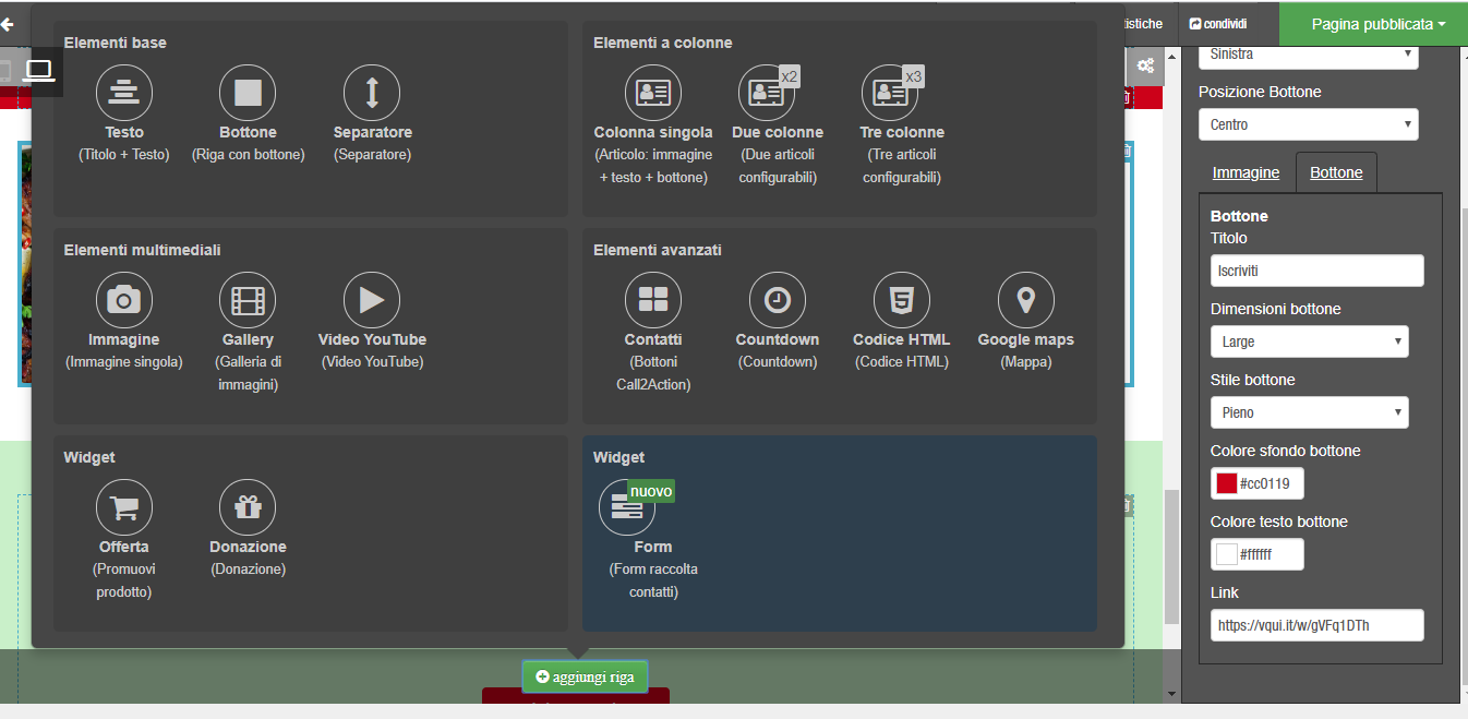 Dal menù di sinistra vai alla voce “Landing Page” e clicca sul pulsante verde “Nuova pagina”