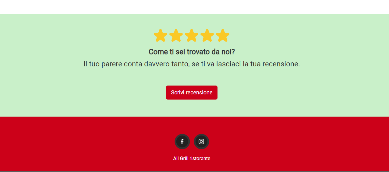 Visto che il menù digitale lo devi fare, ti consigliamo di inserire nella pagina una fascia che incentivi a recensirti (nel template che trovi in Smshosting è già pronta, ti basta inserire nel tasto il link corretto al tuo profilo Trivadvisor o Google):