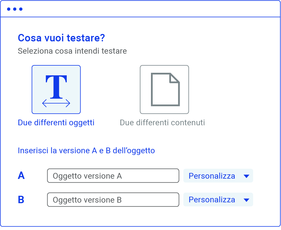 Cioè? Per stabilire qual è l'oggetto email più efficace, puoi inviare le newsletter ad un gruppo ridotto di contatti due varianti dell'oggetto e monitorare la versione che funziona meglio.