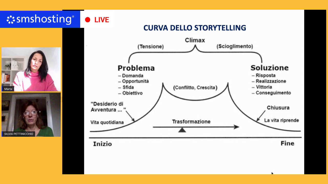 Silvia: La mia è una formazione economica, mi sono laureata negli Stati Uniti. Ho da sempre avuto però una grandissima passione: la scrittura e il "raccontare storie". Quando ho scoperto l'esistenza dello storytelling aziendale ho unito la mia passione alle mie competenze personali che avevo messo da parte in tanti anni di carriera. Oggi aiuto aziende, attività ed associazioni no profit a raccontarsi tramite lo storytelling e insegno all'Università.
